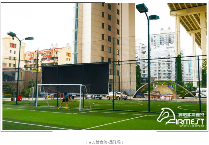 围网系统结合运动抗冲击性和安全性,采用立柱、横杆、围网、扣件专业标准化的参数设计,灵活可拆式结构避免了一次性焊接的种种弊端。